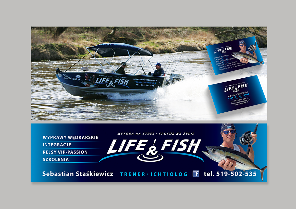 Happy Design . Life&Fish . logotyp. elementy graficzne. grafika na łodzi